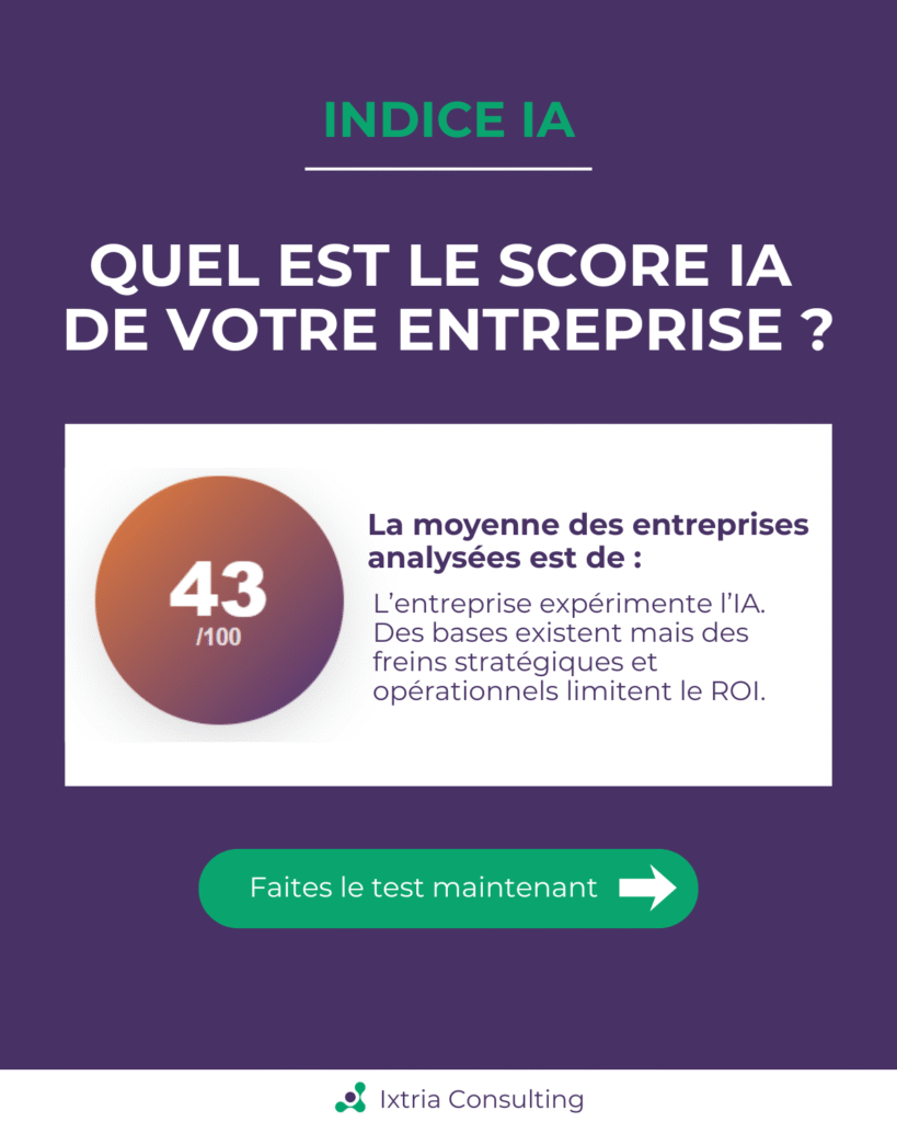 Ces derniers mois, chez Ixtria, nous avons analysé la maturité IA de plus de 50 PME et ETI grâce à notre Indice de Maturité et de Création de Valeur IA™.
